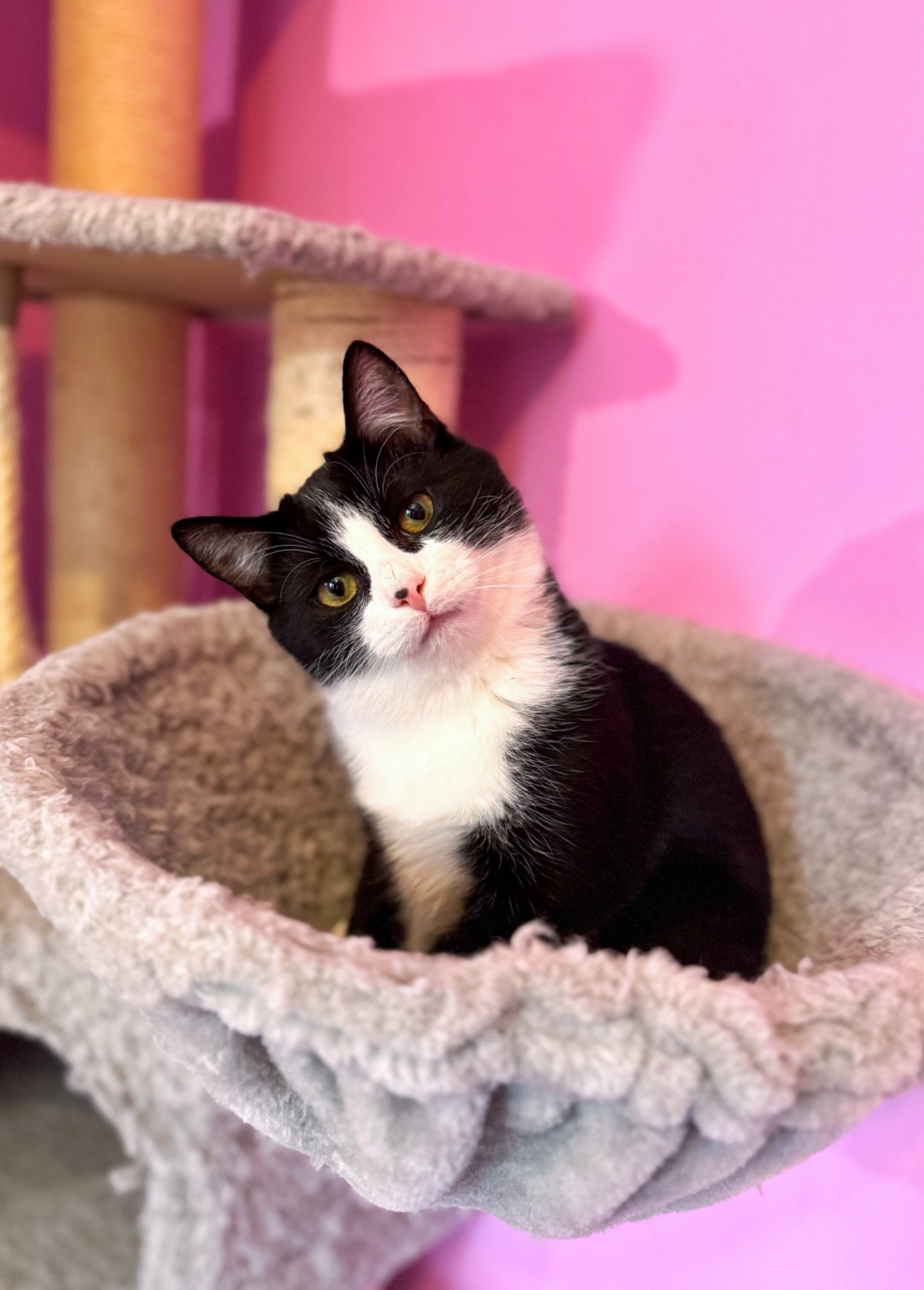 🎯 : je suis devenu un petit ange avec ma famille d'accueil, mais il me faudra encore du temps avec des inconnus. J'ai besoin d'une famille connaissant les chats et ayant counfiance en mon évolution. Peut-être me cacherai-je ou soufflerai-je lors de la visite, mais crois-moi : je deviendrai vite ton super compagnon 💜