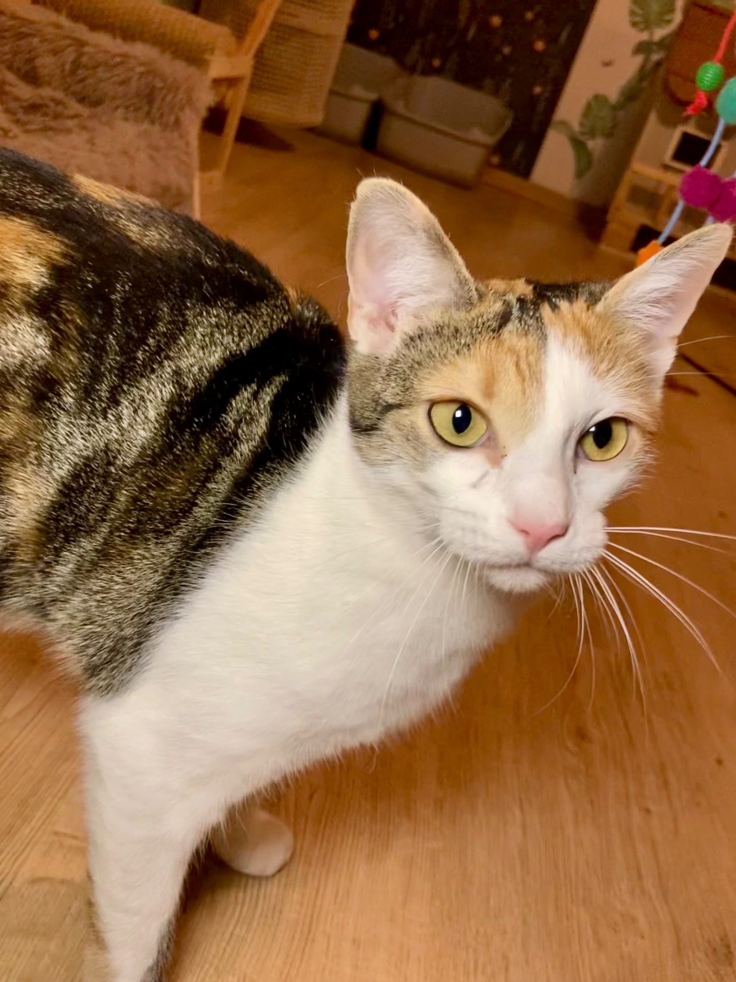 C'est une petite chatte très vive, qui adore jouer (seule, avec ses jouets, ou avec son frère Espen). Eija a connu l'extérieur mais elle pourrait probablement s'accommoder également d'une vie dans un intérieur spacieux. L'essentiel pour elle étant vraiment le calme et l'attention qu'on lui portera pour la mettre en confiance.