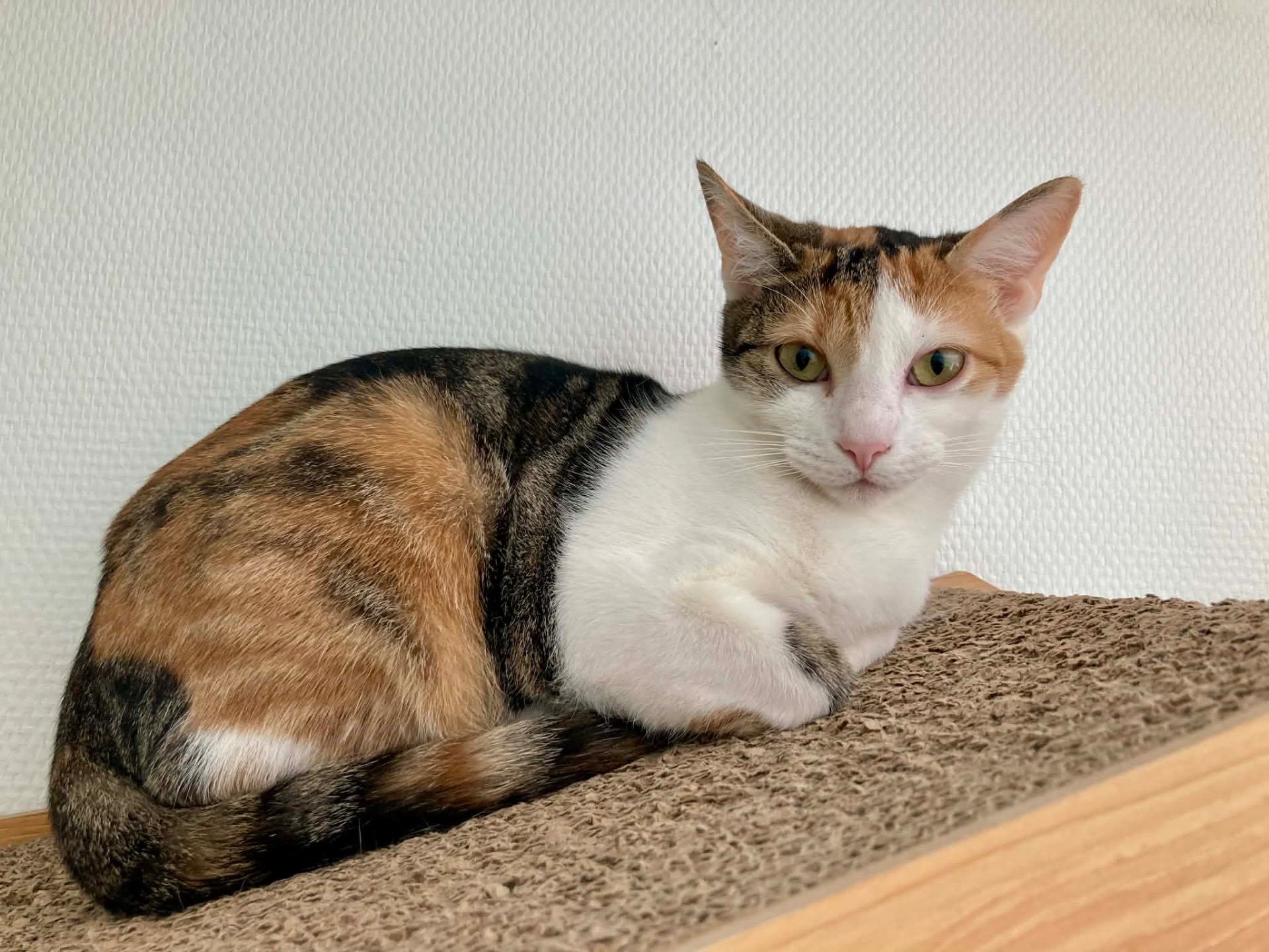 Eija est une jolie petite femelle, très douce mais encore fort craintive. Même après 3 mois dans sa famille d'accueil, elle ne se laisse caresser que lorsqu'elle mange. Mais quand on la caresse à ce moment-là, elle apprécie et ronronne.