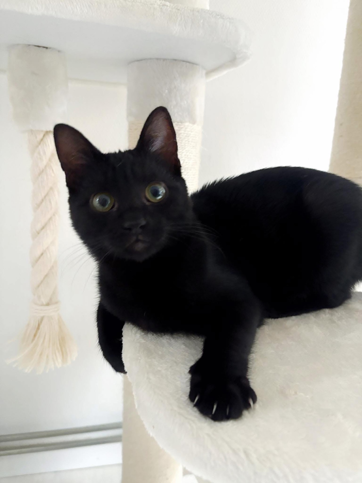 Encore un peu maladroite dans ses jeux, elle apprend chaque jour à contrôler ses griffes et ses mordillements 😅. C'est pourquoi un foyer sans jeunes enfants serait préférable pour elle.